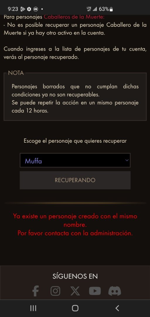 Personaje afectado: muffa Fecha de ser borrado : menos de 30 día Explicacion: no me deja recuperar mi personaje muffa una bruja lvl 80 porque ya existe otro personaje con dicho nombre