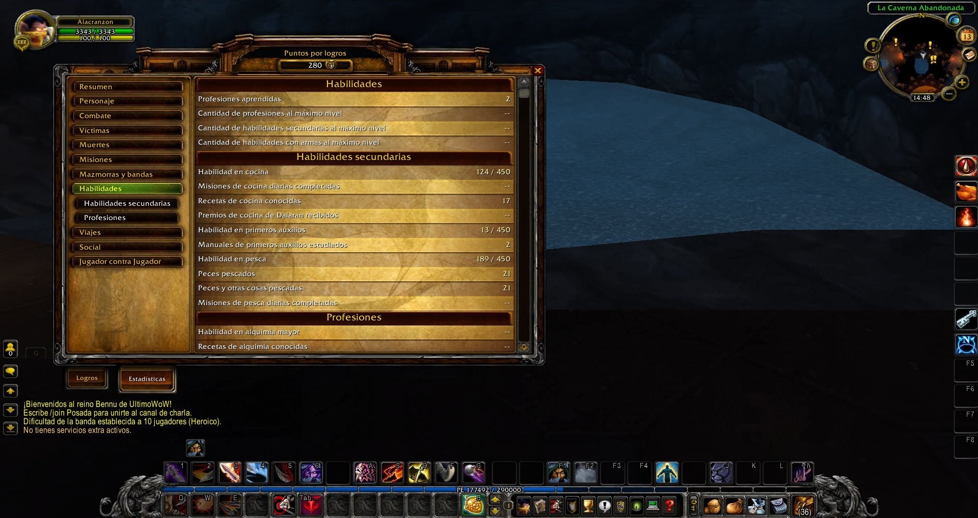Desde el primer momento en que adquirí la habilidad de pesca a un nivel bajo, noté un comportamiento extraño en la mecánica de recolección del corcho de pesca. Al escuchar el sonido que indica que un pez ha picado y ver la animación del agua salpicando, hago clic para interactuar. En ese momento se abre el inventario del loot, pero aparece el mensaje “No hay peces en el anzuelo”, a pesar de que claramente se puede ver un pez dentro del inventario de loot. Si intento recogerlo, simplemente no me lo permite. En un principio pensé que el problema se debía a que estaba interactuando demasiado rápido con el corcho. Para comprobarlo, esperé distintos intervalos antes de hacer clic: 1 segundo, 2 segundos, 3 segundos e incluso más, calculando un tiempo prudente para permitir la recolección. Sin embargo, el resultado fue siempre el mismo. Soy consciente de que los puntos en la habilidad de pesca influyen bastante, pero la forma en la que se presenta este comportamiento me parece fuera de lo normal. Cuando se tiene la habilidad baja, lo habitual no es que el juego impida recoger peces, sino que se obtengan objetos de baja calidad, como ramitas, trozos de tela, botellas vacías, piedras, etc. Aclaro que no estoy afirmando que la pesca sea imposible; de hecho, sí logro obtener peces de vez en cuando. No obstante, considero que podría obtener más si no fuera por esta forma poco común en la que falla la pesca. Esto lo comento basándome en mi experiencia pescando en otros servidores y expansiones. Hago esta consulta principalmente por mi desconocimiento sobre si esta es la forma correcta en la que funciona la habilidad de pesca aquí, o si se trata de un bug. A continuación dejo dos imágenes de referencia: > La primera muestra claramente el problema que describo. > La segunda corresponde a mis estadísticas actuales, incluyendo los peces obtenidos y mi nivel de habilidad de pesca. Agradezco de antemano su atención y cualquier aclaración o ayuda al respecto. -