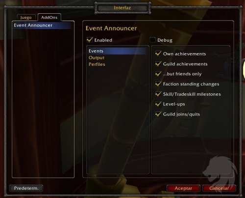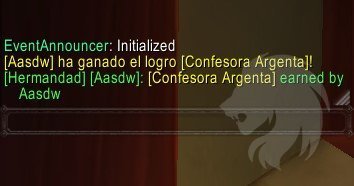 Utiliza este addon para retransmitir eventos notables a cualquier canal de chat. Especialmente útil si quieres mantener a tus amigos de otras hermandades informados de tus logros. Puedes seleccionar qué canal(es) usar para la emisión, y qué tipos de eventos retransmitir: