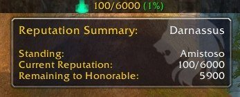 El modo reputación rastrea automáticamente la facción seleccionada en la ventana principal de reputación. Aanye XP incluso detecta objetivos de reputación negativos y ajustará el seguimiento para adaptarse.