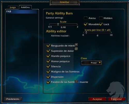 Party Ability Bars está pensado para su uso en la arena para realizar un seguimiento de los cooldowns de las habilidades de los miembros del grupo.