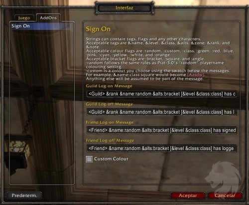 ¿Qué es SignOn? Este addon te permite personalizar los mensajes de inicio y fin de sesión de tus amigos y compañeros de hermandad como mejor te parezca.