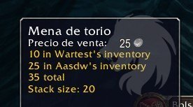 WhoHas modifica cada tooltip en el juego para mostrar cuál de tus personajes tiene el ítem en el tooltip, y dónde.