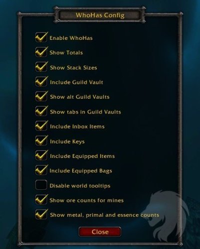 WhoHas requiere un addon separado para rastrear todos tus ítems personales. WhoHas es compatible actualmente con Armory