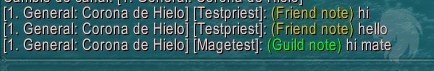 Cada mensaje de Hermandad, grupo, decir, canal y susurro, tendrá la nota añadida al lado del nombre del jugador.