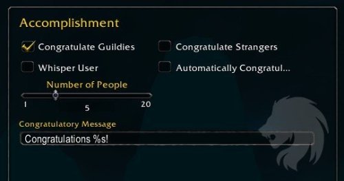 Este es un pequeño addon con un propósito: proporcionar una manera fácil de felicitar a alguien, ya sea un gremio o un extraño al azar, cuando ganan un logro.