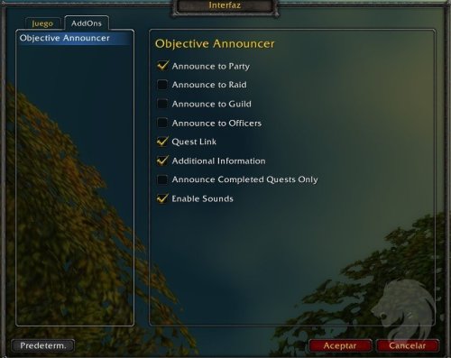 Objective Announcer es un simple addon diseñado para ayudarte a comunicar automáticamente el estado de las misiones a otros jugadores.