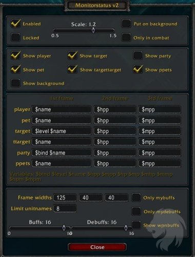 Añade un marco de unidades de grupo en formato de texto simple, incluyendo la capacidad de mostrar buffs y debuffs.