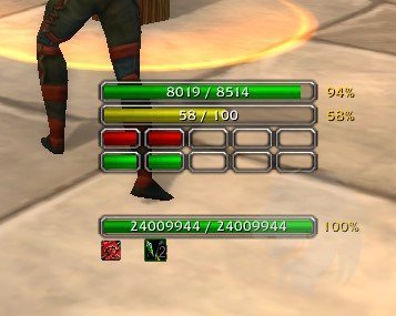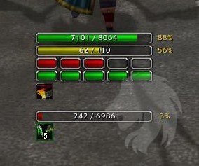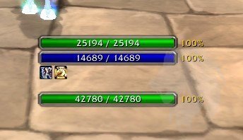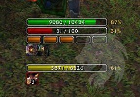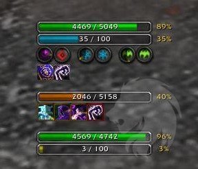 StatusBars2 crea barras de estado en pantalla para tu salud, maná, energía, poderes específicos de clase (puntos de combo, etc.), buffs y debuffs.