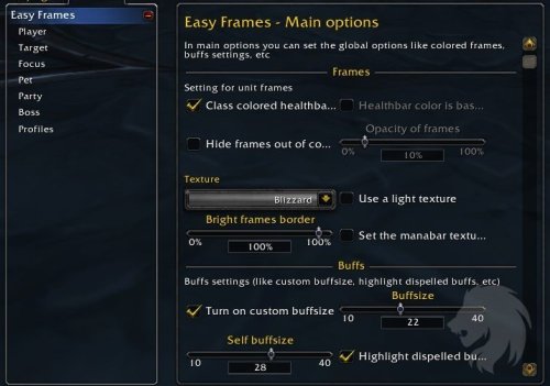 - Mostrar/ocultar algunos elementos de los marcos de unidad (como nombre, barra especial, ícono de descanso, etc.)