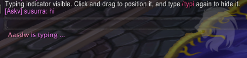 El indicador tiene un tooltip que lista si más de una persona está escribiendo, y se colorea según los colores del chat (verde para hermandad, rosa para susurro, etc., o según configuración de colores del juego).