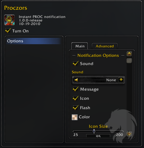 Proczors está diseñado para alertar al usuario sobre cualquier ID de hechizo o nombre de hechizo predefinido y personalizado mediante una advertencia visual y audible totalmente configurable.