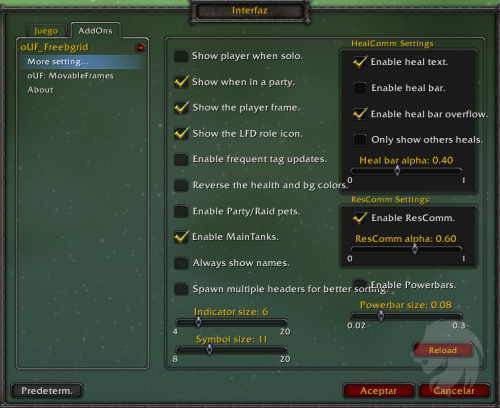 La mayoría de los ajustes generales se pueden hacer en el panel de interfaz y usualmente requieren un ReloadUI cuando termines.