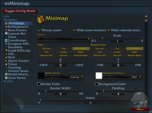- Añadir coordenadas al minimapa, por defecto están ocultas, pero se muestran al pasar el ratón por encima.