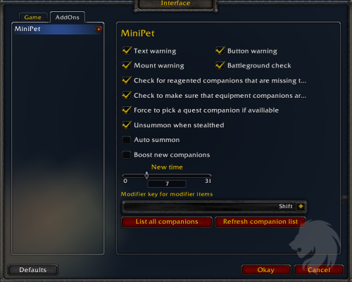 MiniPet es un addon que te ayuda a gestionar y convocar compañeros en el juego.