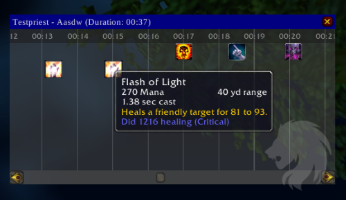 - Ofrece información de daño para cada hechizo lanzado en la línea de tiempo.