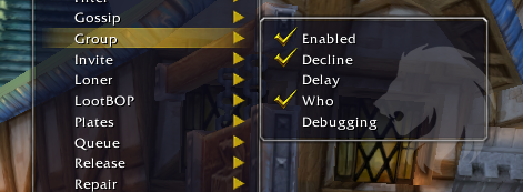 Ejemplos incluyen: evitar el texto de "diálogos", reparar automáticamente los objetos cuando estás con vendedores, aceptar automáticamente invitaciones, resurrecciones o colas de campos de batalla, entregar misiones repetibles o diarias, y más.