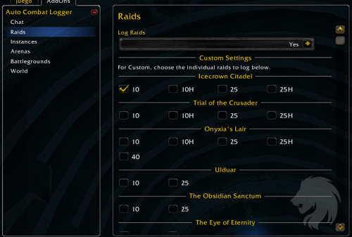 AutoCombatLogger automáticamente habilita o deshabilita el log del registro de combate según la ubicación.
