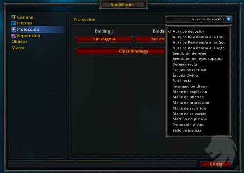 Para invocar la ventana de binds del addon, usa /spellbind.