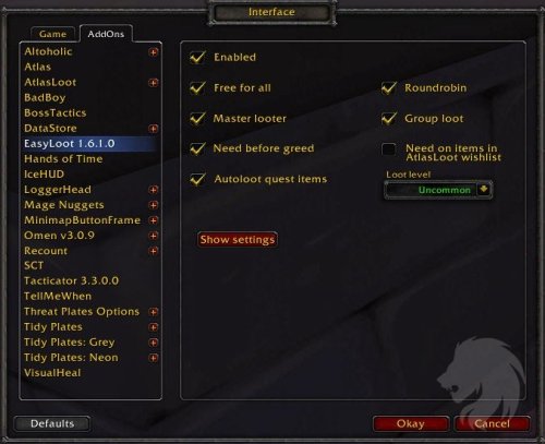 Cuando está habilitado y el botín automático está deshabilitado, el reparto se realiza automáticamente utilizando un filtro definido por el usuario, de forma que sólo los objetos con una calidad/rareza superior a un determinado nivel son loteados automáticamente.