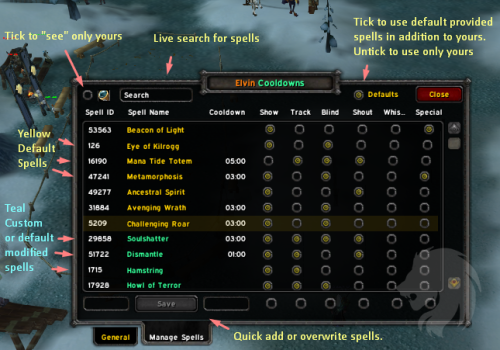 - Spell ID: Es obviamente el ID del hechizo. El addon lo ignorará si no encuentra el hechizo.