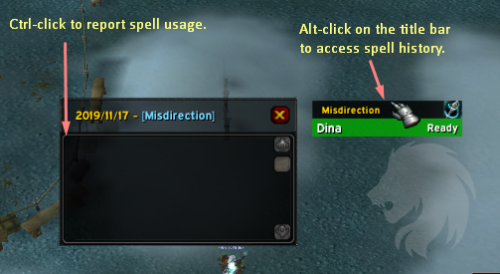 Si haces alt-clic en el nombre del hechizo (que es la barra de título negra) accederás al historial de uso del hechizo para que puedas llevar un registro de qué fue usado, por quién, sobre quién y en qué momento.