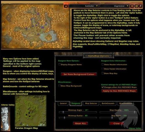 Básicamente, AlphaMap es un mapa de mundo escalable, móvil y transparente que el usuario puede tener en la pantalla mientras continúa jugando e interactuando con el mundo.
