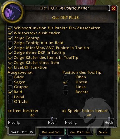 El addon de WoW GetDKP representa la información más relevante de EQdkp preparada gráficamente, así como todos los jugadores con sus clases apropiadas y DKPs son listados. Es para ser cambiado así nunca más necesariamente tras una muerte de un jefe usar ALT+Tab en el Escritorio de Windows, para revisar los DKPs. Éstos se pueden comprobar cómodamente en WoW. El diseño organizado del GetDKP permite la cómoda clasificación de la lista de miembros de acuerdo a nombres, clases o incluso después de DKPs. Los ítems que los miembros obtuvieron, también se muestran en la GUI así como los DKPs pagados por ellos. También se incluye un módulo para la subasta de objetos en la banda y la determinación automática del ganador teniendo en cuenta el DKP actual de los jugadores.