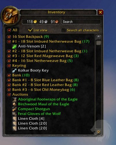 - Inventario en el que se pueden realizar búsquedas, incluidas bolsas, bancos, buzones y artículos subastados