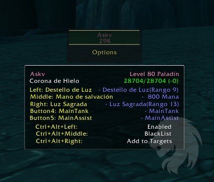 El addon configurará opciones básicas en 5 botones y modificadores, incluyendo los botones del ratón.