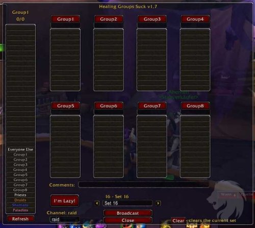 También puedes usar el botón "I'm lazy!" para distribuir uniformemente los sanadores no asignados a todos los grupos con nombres personalizados. Por ejemplo, ahora puedes introducir fácilmente los nombres de 3 tanques, hacer clic en el botón "I'm lazy!" y publicar los grupos. Puedes restablecer los nombres de grupo predeterminados pulsando Enter en un cuadro de texto vacío.