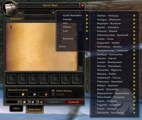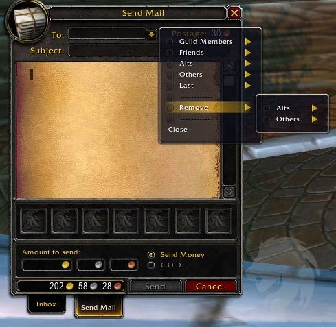 - Añade un menú desplegable a la casilla del destinatario. Despliega 4 categorías: Alts, Amigos, Hermandad, Otros