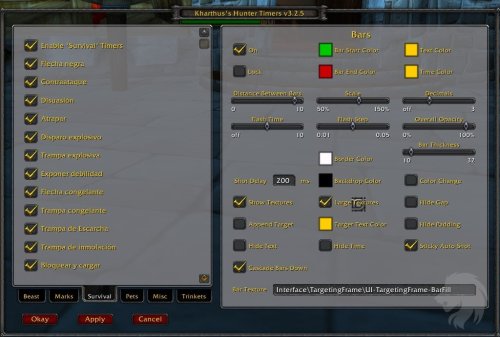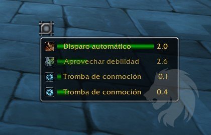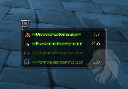 Kharthus's Hunter Timers añade una ventana con temporizadores para los procs y debuffs aplicados del cazador.