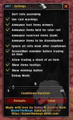 Puedes repartir ítems al matar al jefe o guardarlos para más tarde (sí, esta es una de las diferentes cosas que ofrece). Lo primero que tienes que hacer es ir a la Configuración del addon y configurar lo que necesitas (se explica por sí mismo), a continuación, tienes que seleccionar:
