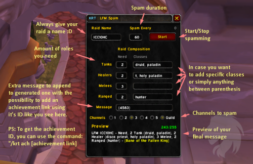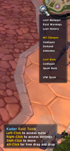 - Spam Loot / Ready Check: Para las mismas situaciones que el anterior, si es de un jefe simplemente le dices a la banda lo que cayó, pero si es de tu inventario, le dices a la gente que vas a rodar y hacer un ready check antes de empezar.