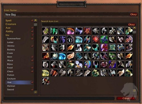 Esto comprimirá tu inventario físicamente combinando pilas parciales. Dependiendo de si la bolsa está configurada para mostrar ítems de la bolsa principal y/o ítems del banco, desfragmentará sólo las bolsas principales y/o el banco.