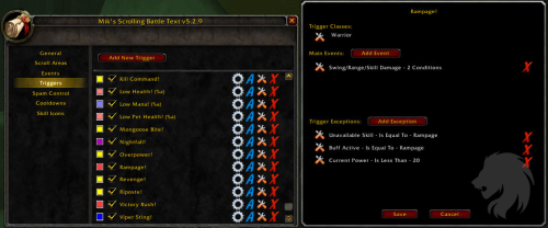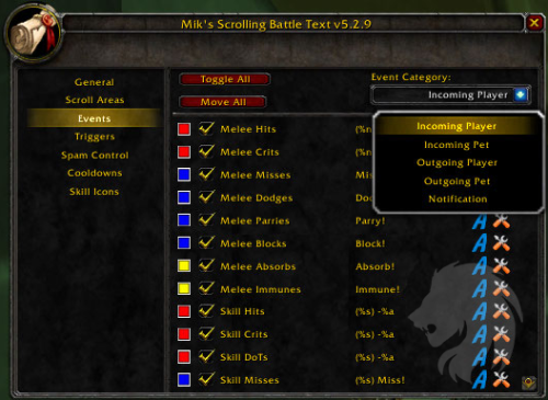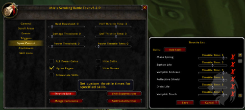 MSBT está diseñado para ser un addon extremadamente ligero, eficiente y altamente configurable que hace más fácil ver la información de combate desplazando la información en la pantalla en áreas de desplazamiento separadas y dinámicamente creables.