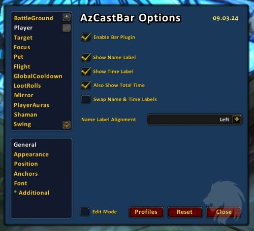El comando de barra diagonal para AzCastBar es /acb. Su uso abrirá el cuadro de diálogo de opciones.