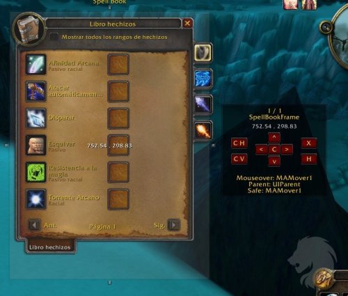 Esta ventana principal contiene una lista de los marcos del juego(cualquier elemento que no esté en la lista puede ser añadido a la categoría de Marcos Personalizados mediante /move frameName, /mafe frameName, /hide frameName o una de las combinaciones de teclas move/mafe/hide).