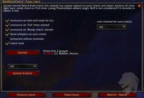 - Flask check - muestra quién no tiene frasco o buff de comida (¡comprobación automática!)