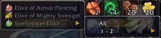 - Proporciona un menú al hacer clic con el ratón en el equipo de las bolsas, en el marco del personaje, en la ranura "No se comerciará" de Encantamiento y en cualquier material que se pueda utilizar para cualquier habilidad.