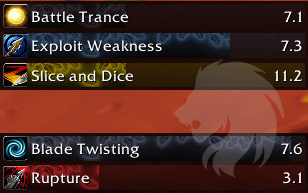 Este addon permite crear barras de buffs y debuffs para todos los hechizos del pícaro, incluyendo efectos de abalorios y encantamientos.