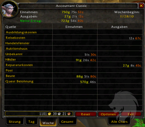 Accountant Classic es una herramienta básica para realizar un seguimiento de tus ingresos y egresos monetarios dentro de WoW.