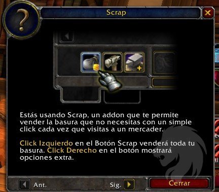 Scrap vende toda tu chatarra cuando visitas a un comerciante. Está diseñado para que sea fácil de usar y configurar qué ítems vender.