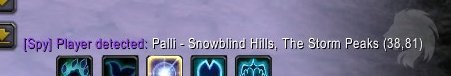 El addon espía escanea el registro de combate en busca de acciones realizadas por jugadores enemigos y anuncia su presencia cuando los detecta.
