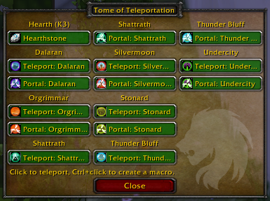 Tome of Teleportation organiza todos tus hechizos e ítems de teletransporte en una única ventana.