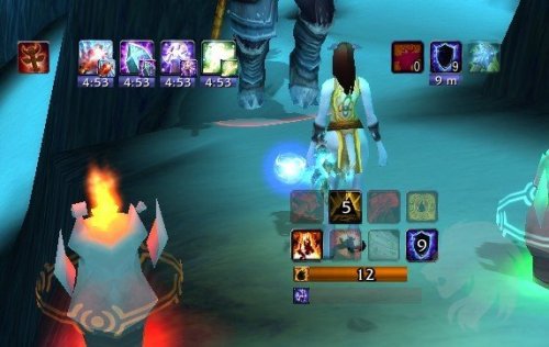 Hay 5 barras donde puedes colocar tus hechizos como botones, similares a los botones de acción. Estos botones mostrarán los tiempos de cd de los hechizos o la duración de los buff si están activos.