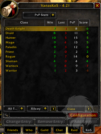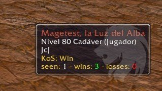 - Te notifica si un jugador de tu lista KoS está haciendo algo cerca de ti (pelea/buff/charla) en la ventana de chat, área Superior y vía Sonido