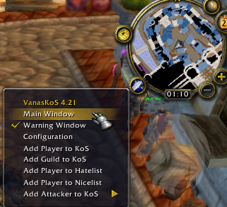 Vanas KoS es un notificador de muertes, que utiliza todas las posibilidades, para detectar objetivos de muerte cercanos, y notifica al usuario de diferentes maneras.