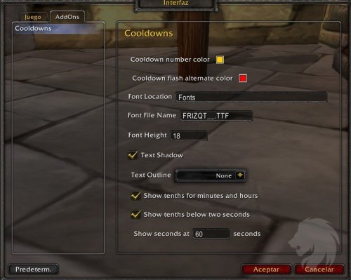Configura colores, fuentes y otras opciones a través del panel de opciones de la interfaz de Cooldowns.